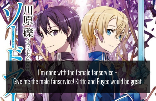 “I’m done with the female fanservice - Give me the male fanservice! Kirito and Eugeo would be great.”